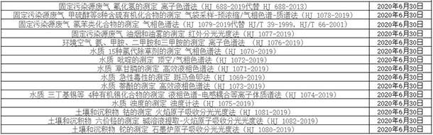 今年6月,又將有一批標準將陸續(xù)實施,為我國的社會發(fā)展和經(jīng)濟發(fā)展提供動力。下表列出即將在6月30日起開始實施的15項環(huán)境保護標準有: