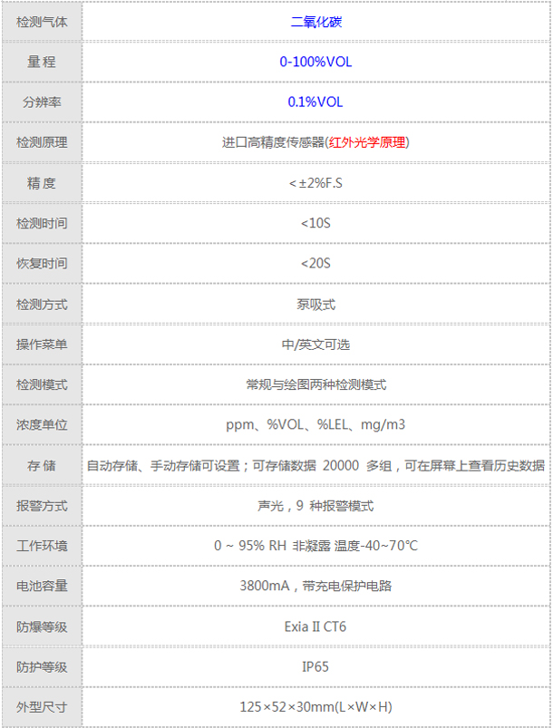 BL05型 便攜式氣體檢測儀的相關指標參數: