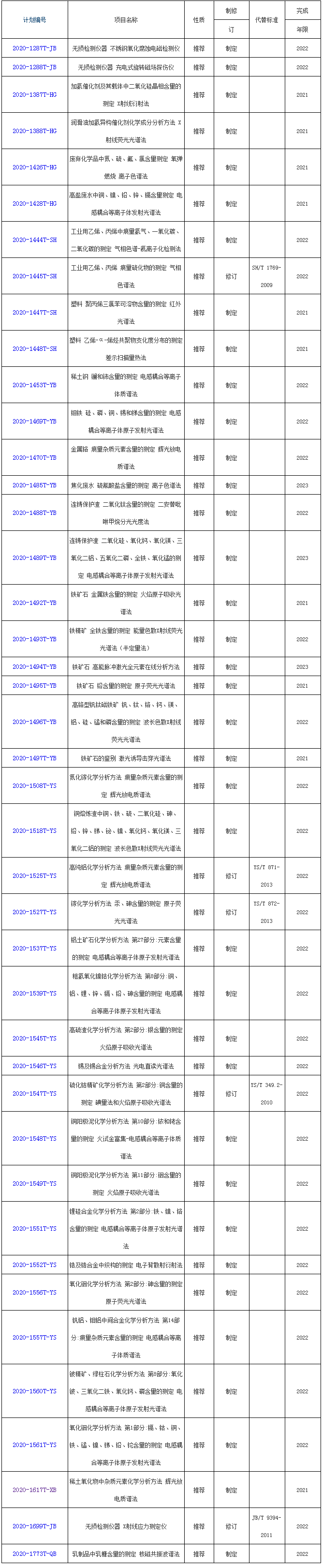 從項目計劃匯總表可看出,這一批標準涉及有色、建材、電子、化工、鋼鐵、機械、輕工、紡織、船舶、石化等行業,其中有多項涉及儀器分析方法,包括X射線衍射法、X射線熒光光譜法、離子色譜法、電感耦合等離子體發射光譜法、氣相色譜-氦離子化檢測法、紅外光譜法等。